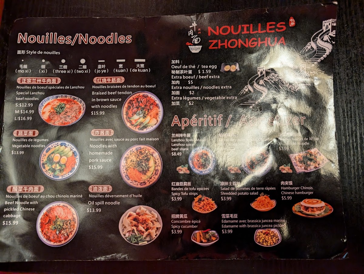 Nouilles Zhonghua - Chinese Noodles Menu
